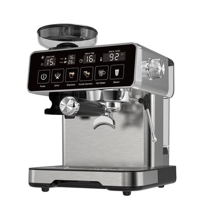 Die Professionelle Espressomaschine mit Mühle verfügt über eine integrierte Kegelmahlwerk mit 22 einstellbaren Einstellungen, eine 20-Bar-Pumpe aus Italien, und ein Manometeranzeige für präzise Extraktion. Diese digital gesteuerte halbautomatische Maschine verfügt über einen 2L Wassertank, 0,4L abnehmbarer Milchtank, und Thermoblock-Heizsystem für konstante Temperatur. Perfekt für die Zubereitung von Espresso, Cappuccino, Latte und Americano zu Hause, im Büro oder in der Küche — mit Einzel-/Doppeltassenoptionen und einfacher Selbstreinigung.